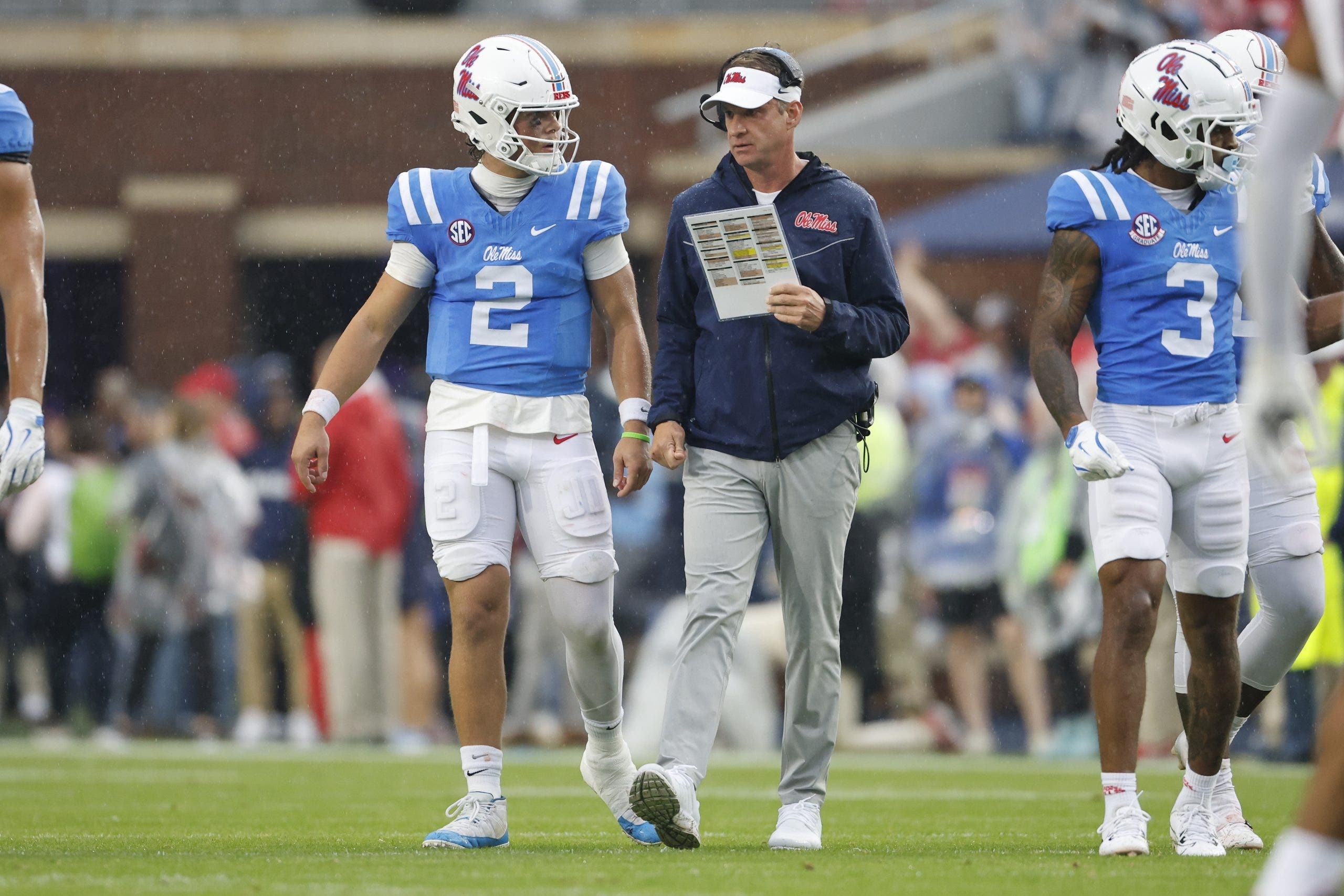Ole Miss QB Jaxson Dart came back from an early injury to throw for 199 yards and a touchdown in the win over Georgia. (Photo by Andy Altenburger/Icon Sportswire via Getty Images)