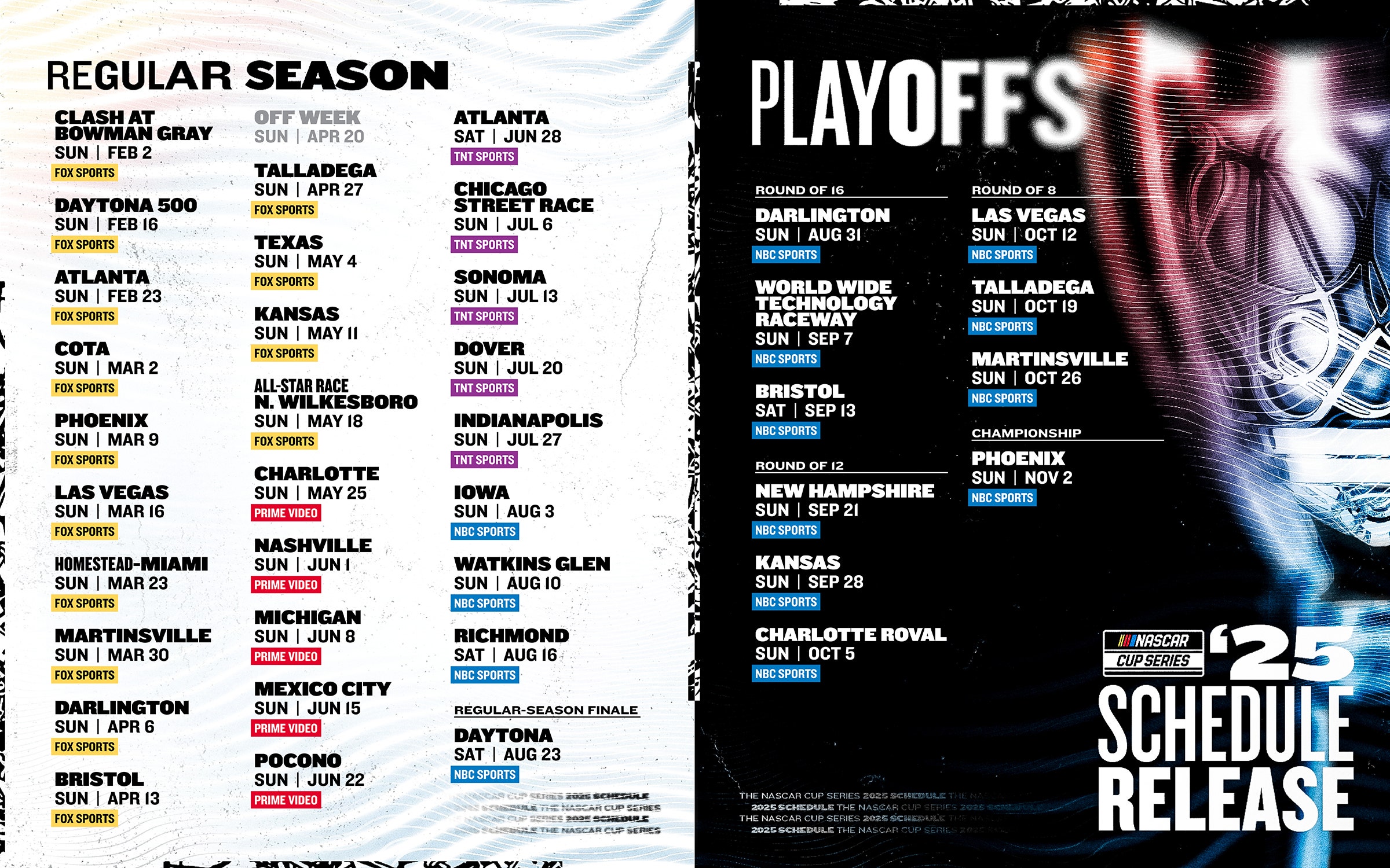 The 2025 NASCAR Cup Series schedule has a considerable change in the order of races throughout the year.
